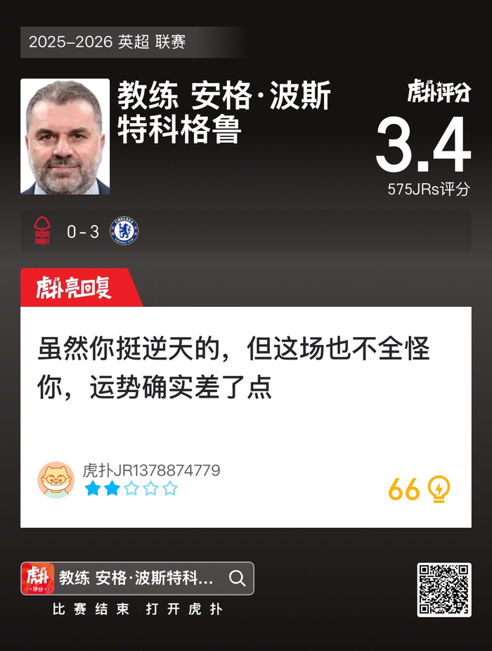波斯特科格鲁拿到虎扑3.4分,这数字刺眼但有意义——这是球迷和媒体对赛后表现的直接反应。评分低说明战术或指挥有短板,不是简单的“运气不好”。教练要肩负更多质问,球迷也有权利火力全开。